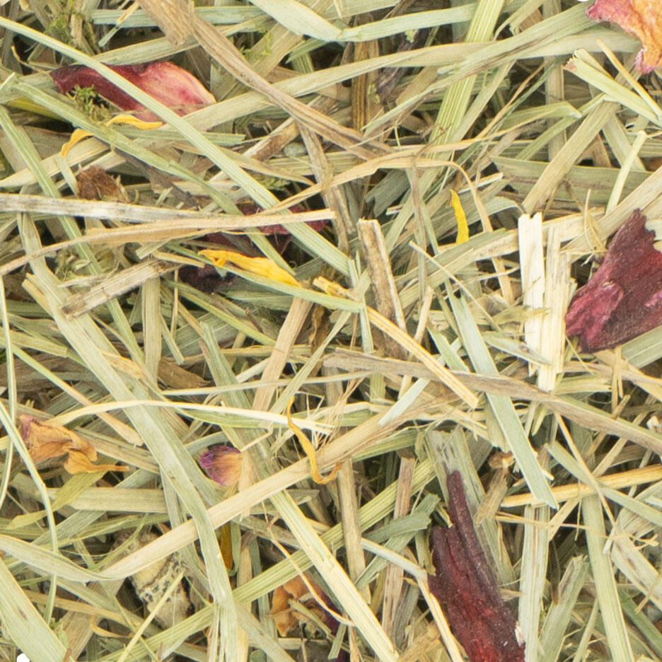 Fieno di prato di montagna 96%, fiori di calendula 2%, fiori di ibisco, petali di rosa 1%
